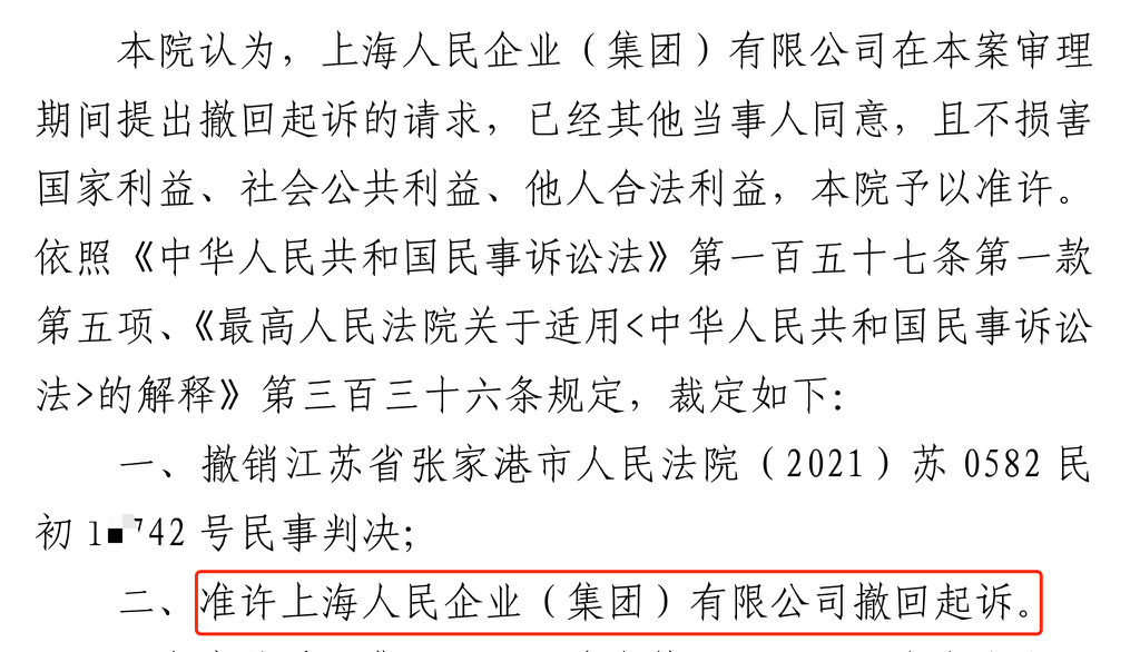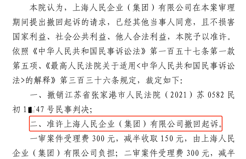 白城胜诉佳讯 | 人民企业系列案苏州六案上海人民公司撤诉