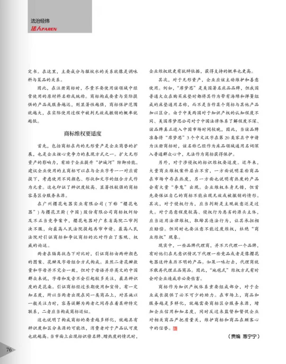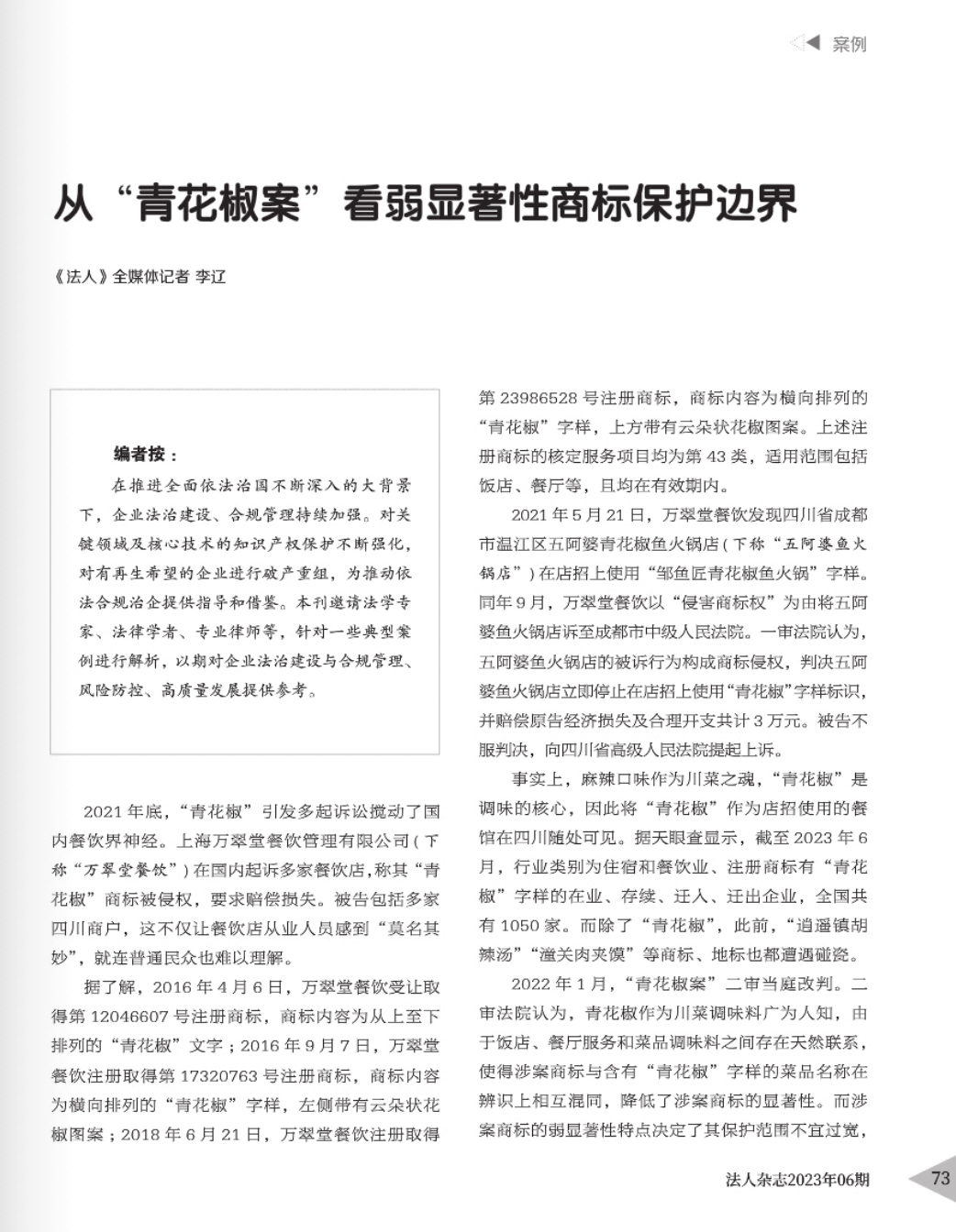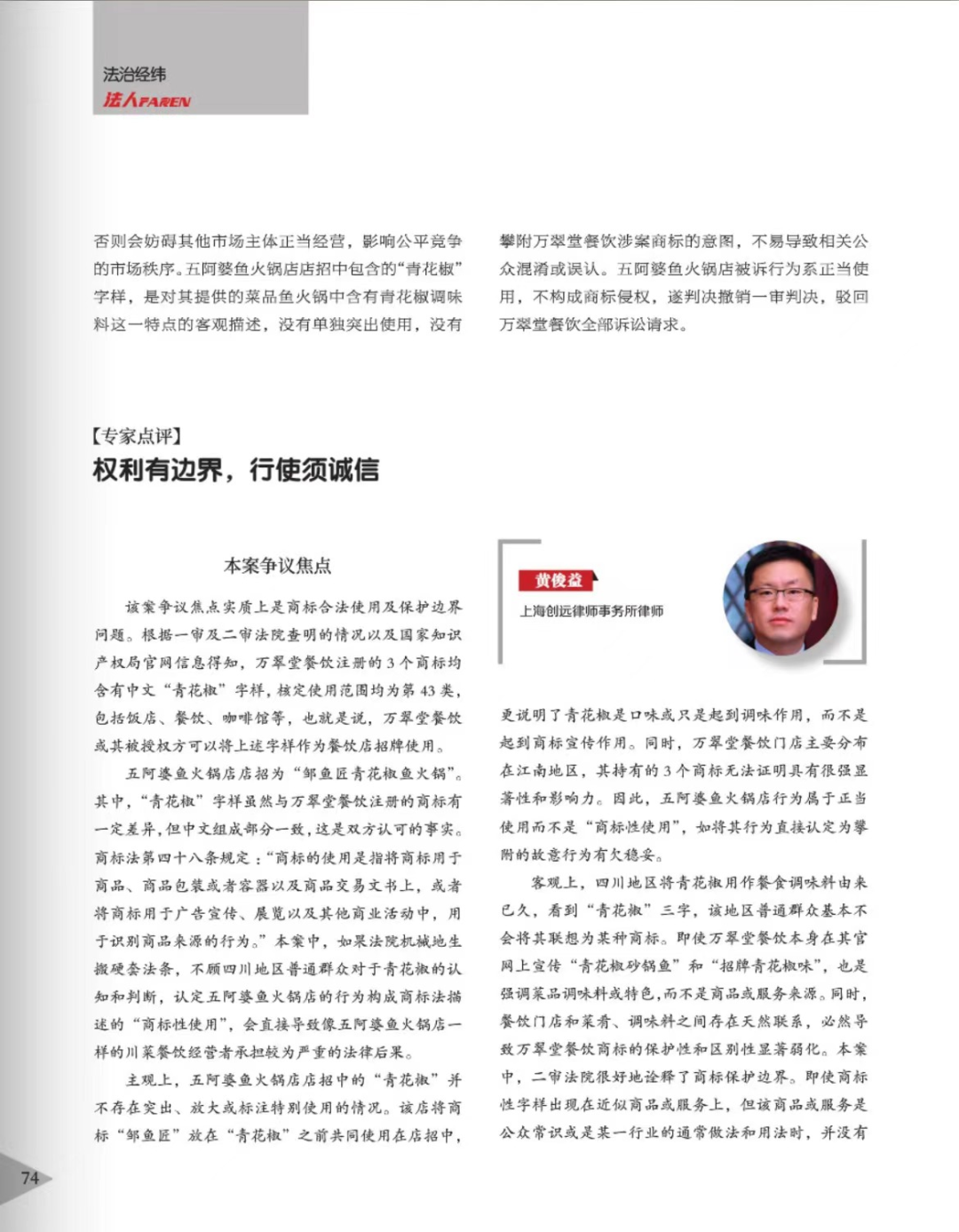 白城辉知简讯 | 辉知队黄俊益律师应“法治日报”旗下杂志邀请,就“青花椒”案发表专家点评
